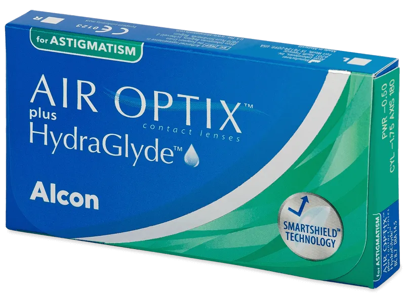Air Optix plus Hydraglyde for Astigmatism jsou měsíční torické čočky společnosti Alcon , které rozšiřují velmi oblíbenou řadu kontaktních čoček Air Optix. Jsou vyrobeny z materiálu silikon-hydrogelového typu . Materiál Lotrafilcon B má propustnost kyslíku na vysoké úrovni, takže k očím může skrz čočku proudit dostatečné množství kyslíku.Kombinace technologií