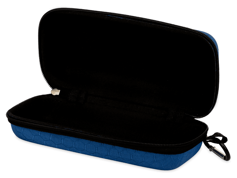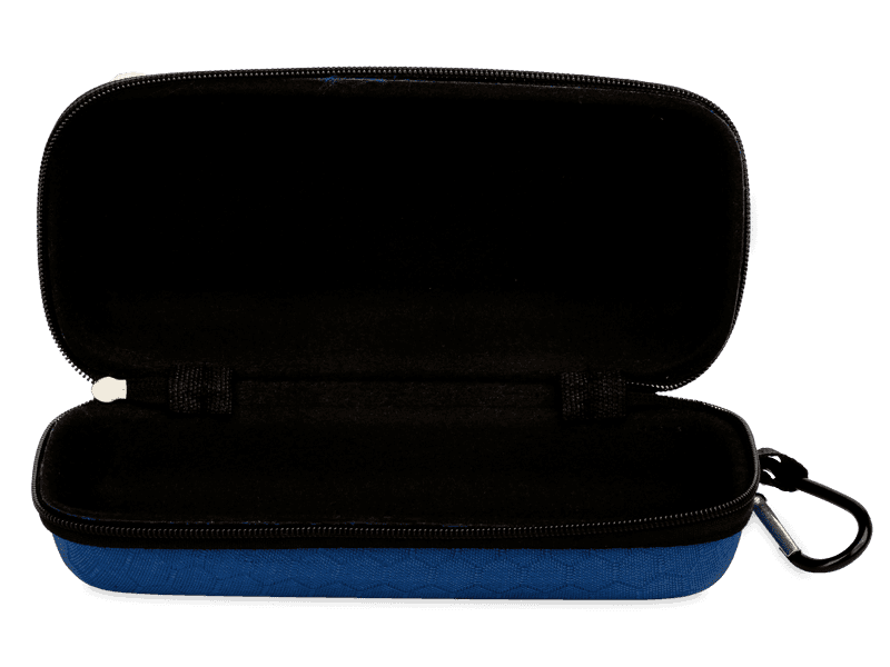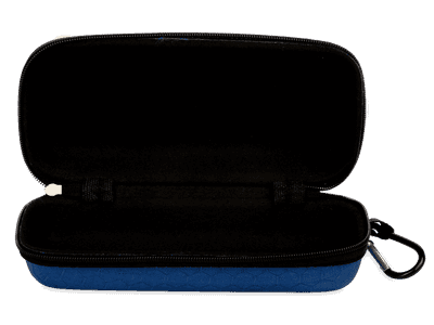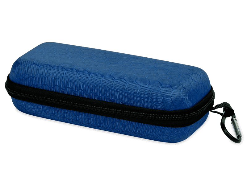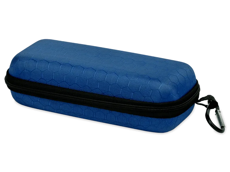 Modré pouzdro na brýle je prostorné se zavíráním na zip. Povrch pouzdra je textilní s jemným vzorem. Pouzdro má praktickou karabinu, kterou můžete využít k uchycení pouzdra na pásku, poutko v kabelce nebo třeba batohu. Pouzdro je vyztužené a je ideální pro bezpečné uložení vašich dioptrických nebo slunečních brýlí. Pouzdro brýle ochrání před poškozením ve chvílích, kdy je zrovna nenosíte.